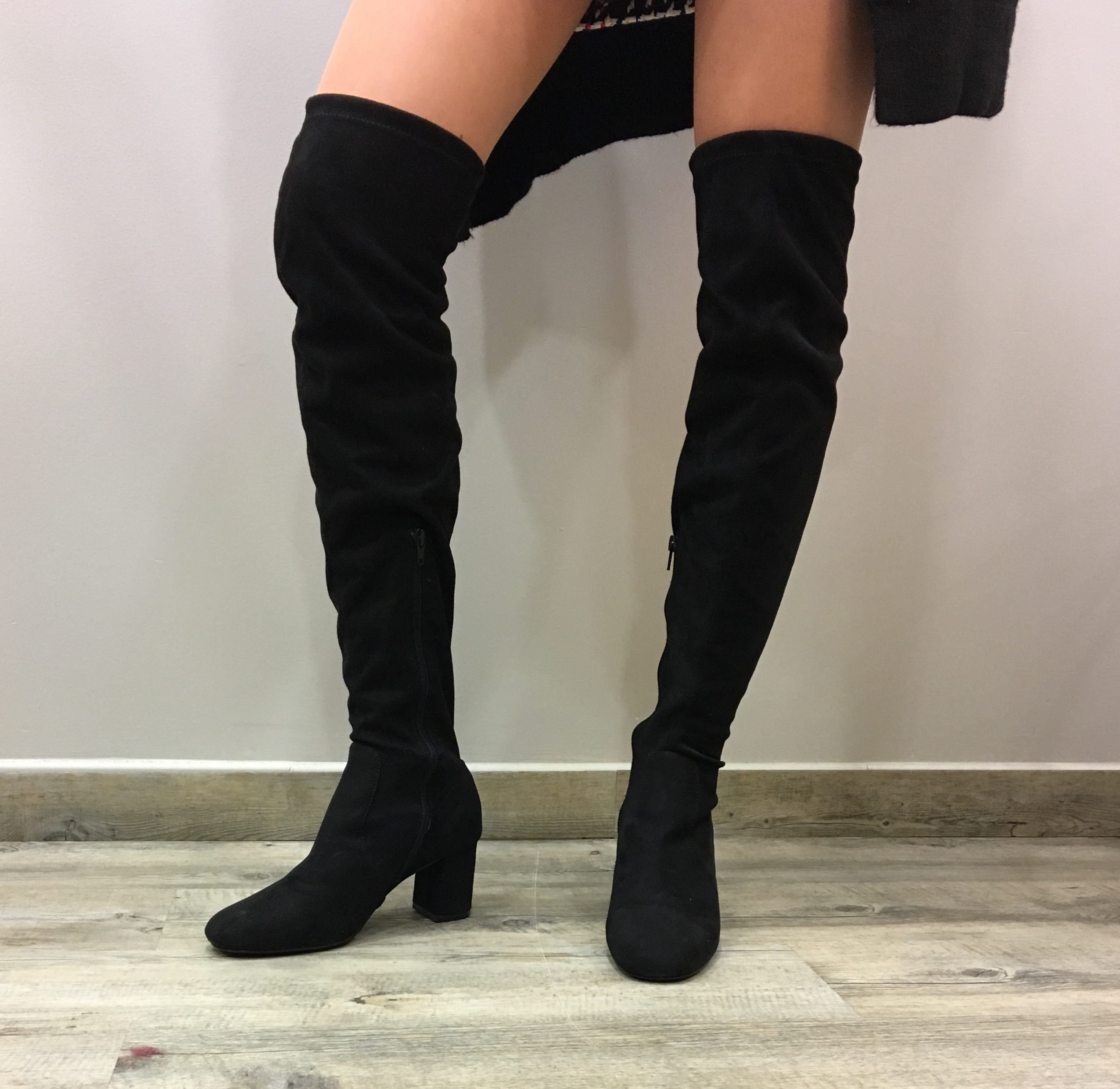 On oublie les collants cette saison et on adopte les cuissardes en microfibres. Elles sont douces et agréables à porter. J’apprécie le fait que le talon soit carré et pas trop haut, ça évite la vulgarité et ça peut aider dans la stabilité quand ça glisse dehors mais qu’on veut à tout prix garder ses tallons !