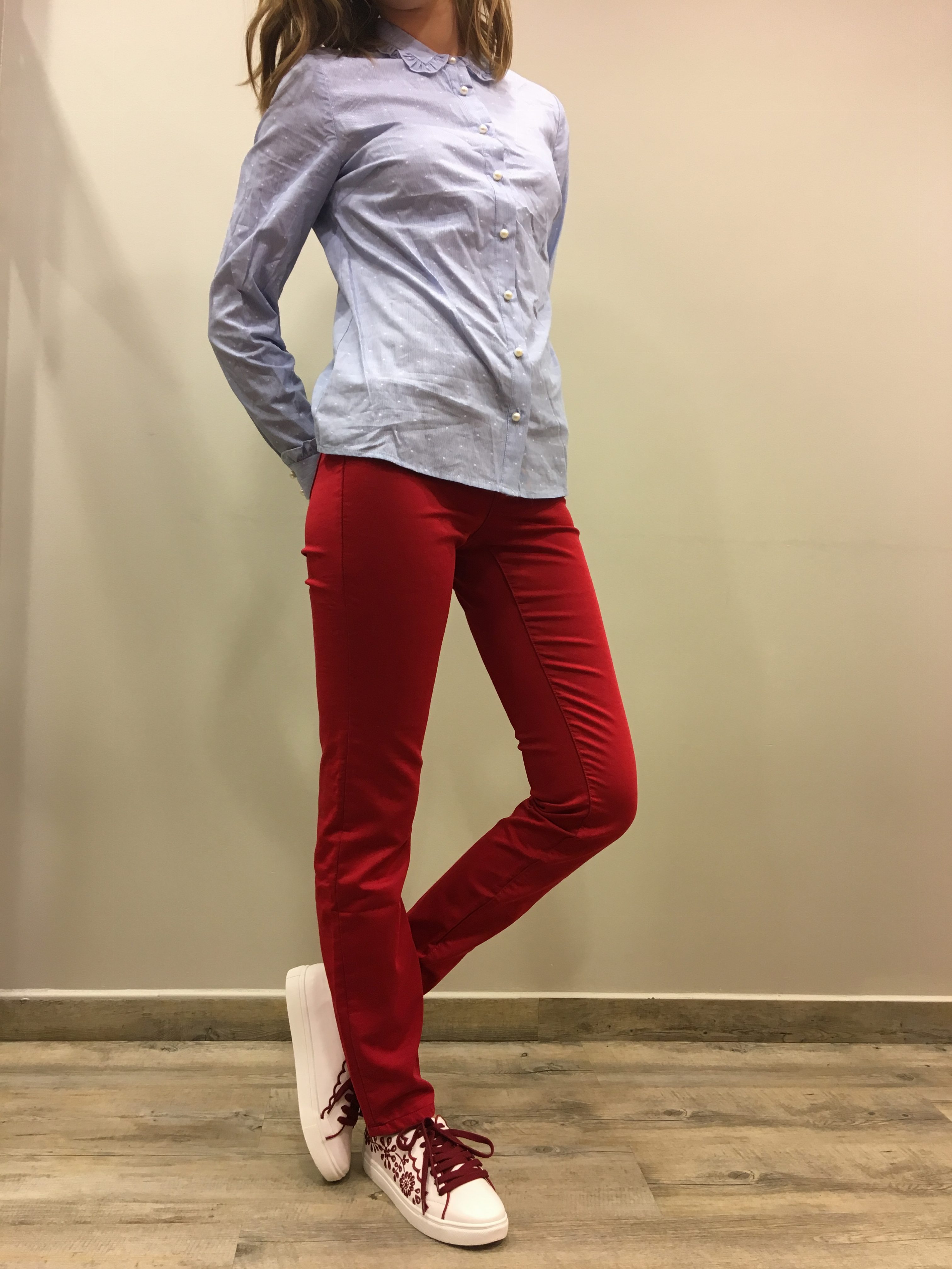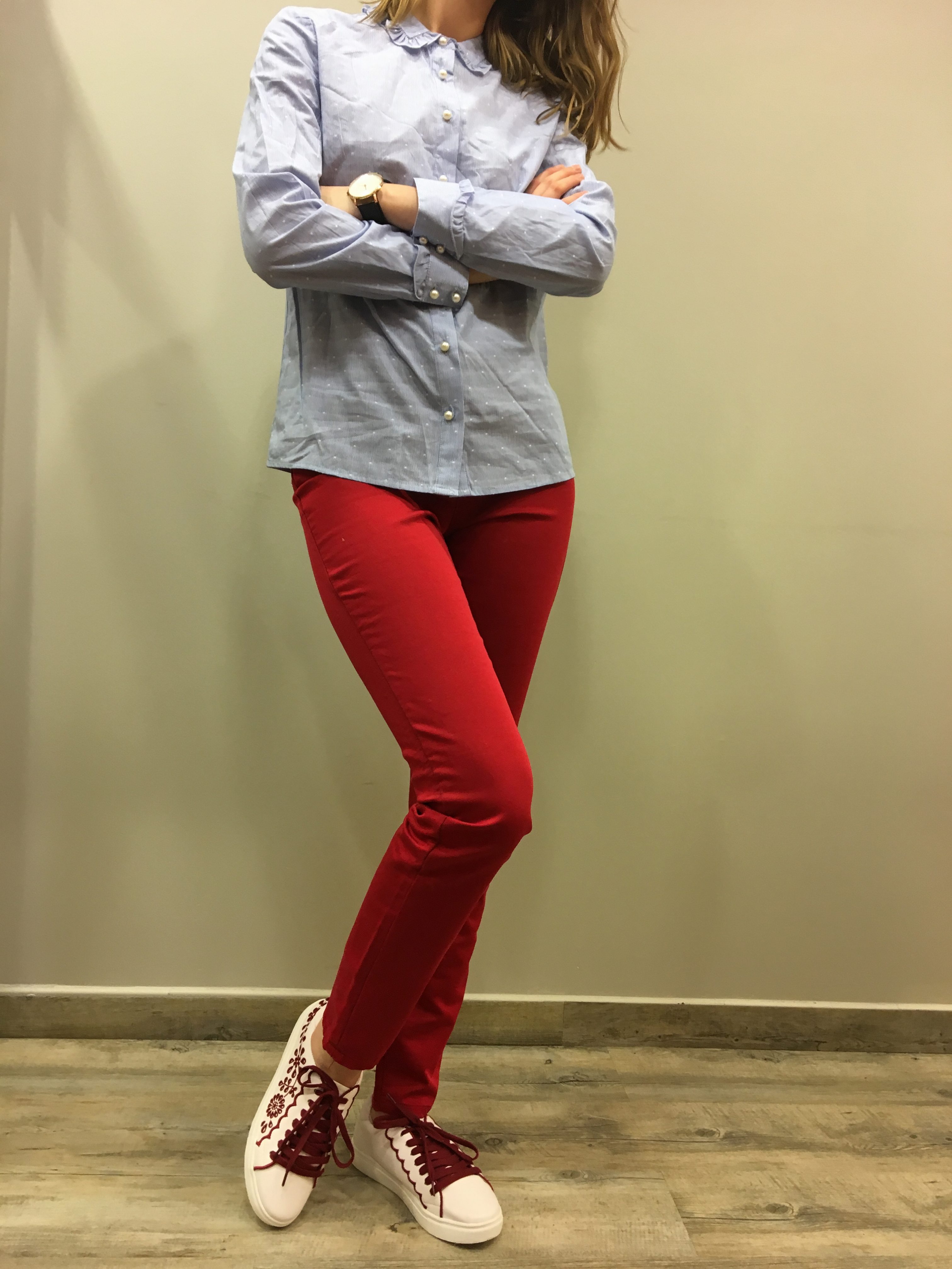 C’était la Saint Valentin cette semaine et quoi de mieux que le rouge pour représenter l’amour ? Bien sûr on peut fêter l’amour tous les jours comme aujourd’hui. J’ai décidé d’associer la chemise NAF NAF et son pull avec ce pantalon skinny rouge. Rien de plus simple, il a deux poches avant et deux arrières.