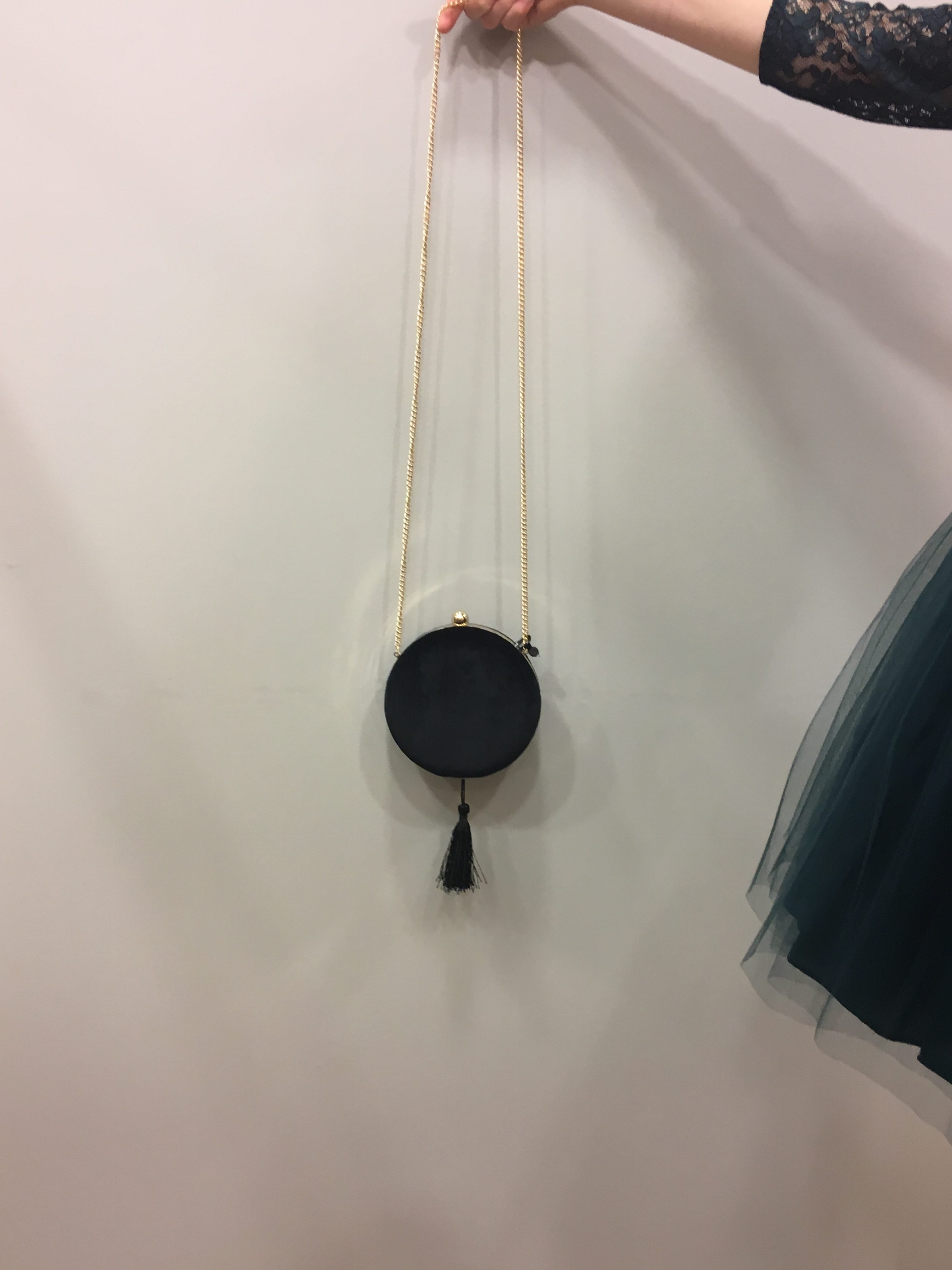 Nous avons le tulle, la dentelle, la soie, et maintenant… Le velours ! C’est une matière que je trouve noble et chaude, parfaite pour les fêtes de Noël. Je l’ajoute en petite touche sur ce petit sac rond. Vous avez une petite chainette dorée pour le porter sur l’épaule ou alors vous pouvez aussi le prendre à la main et ranger la chainette à l’intérieur du sac. À votre aise !